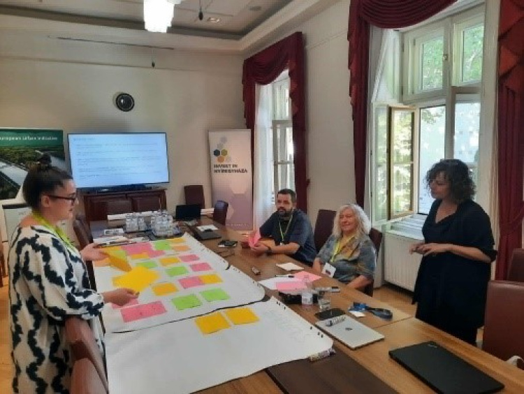 A szerdai napon interaktív workshop került megrendezésre, amelynek célja az volt, hogy a transzfer partnerek a vezető partner segítségével előre lépjenek a projektmegvalósítási útitervük (roadmap) kidolgozásában. A csoportmunka fókuszában a zöldítéssel kapcsolatos akadályok, nehézségek, illetve megoldási javaslatok álltak. A csapatok kialakítása során fontos szempont volt a nemzetközi jelleg, hogy mindenkinek lehetősége legyen megosztani a saját települése jógyakorlatait és innovációit. Ezt követően a programot egy kulturális séta zárta Dr. Csiky Nándor vezetésével. A séta során külföldi partnereink megcsodálhatták városunk kulturális negyedét, főbb nevezetességeit, majd utolsó állomásként a méltán elismert Hősök téri parkot is.