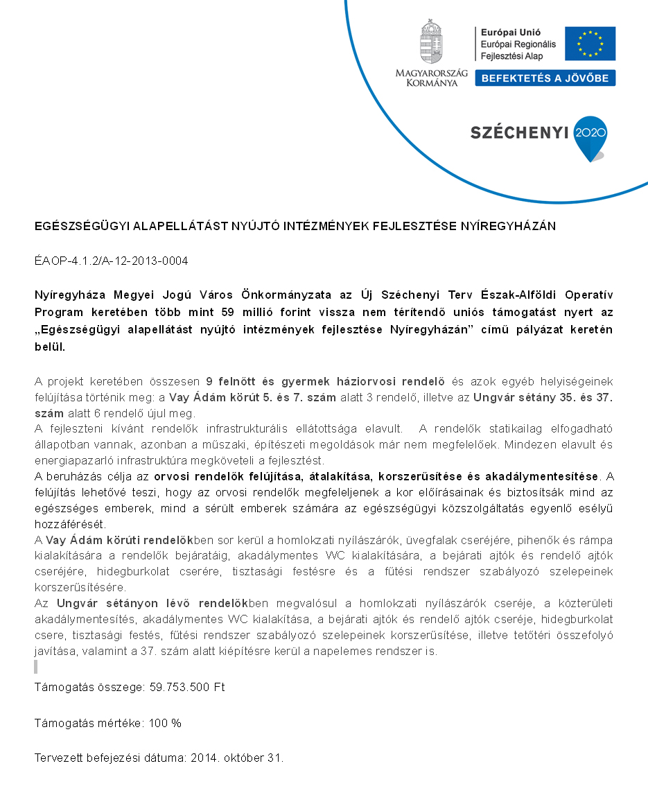 Egészségügyi alapellátást nyújtó intézmények fejlesztése Nyíregyházán