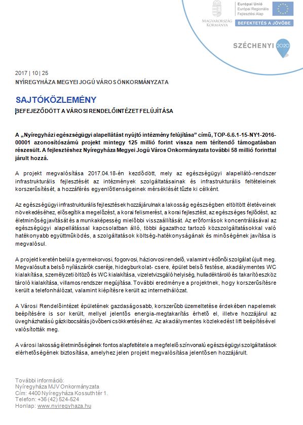 Nyíregyházi Egészségügyi Alapellátást Nyújtó Intézmény felújíása