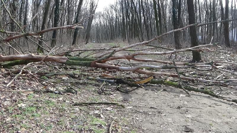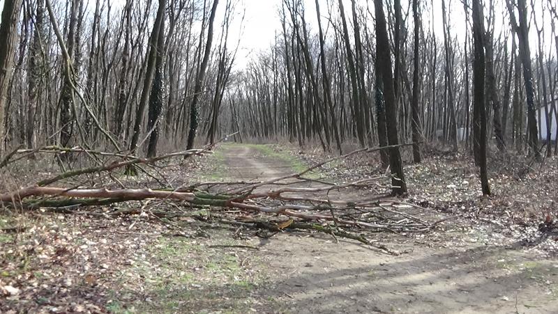 Erdei tanösvényre dőlt ki egy kiszáradt fa a Sóstói-erdőben