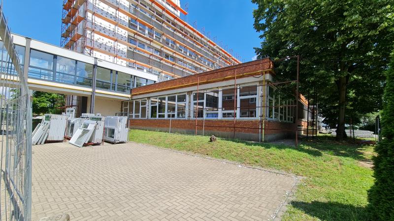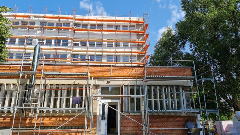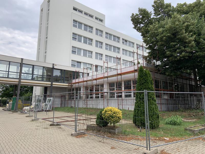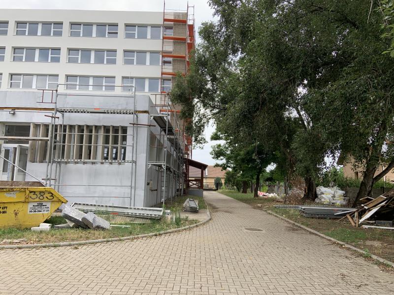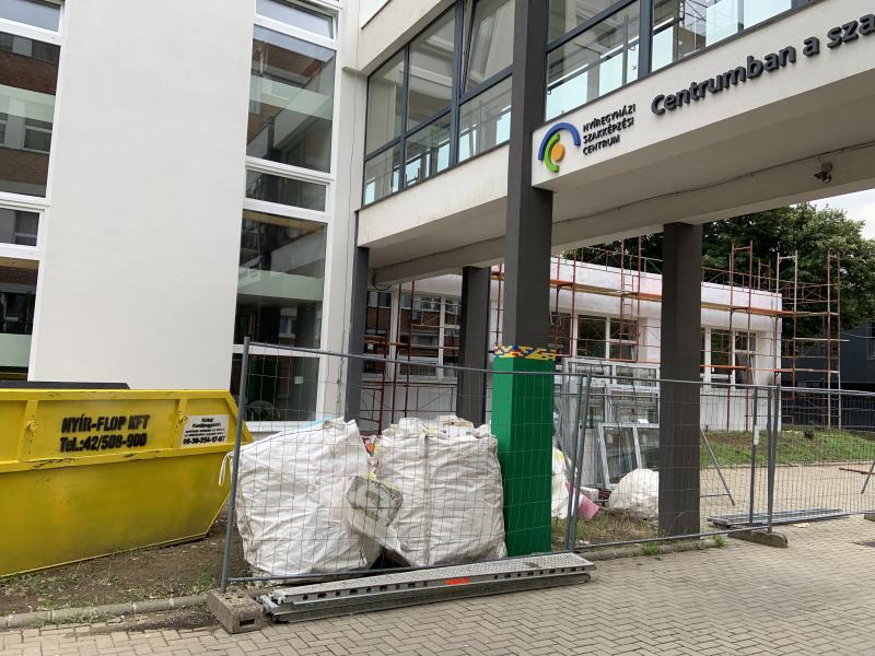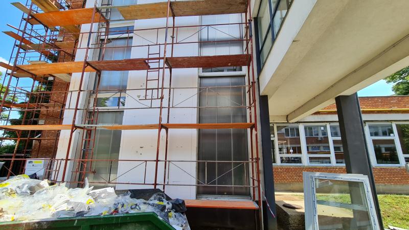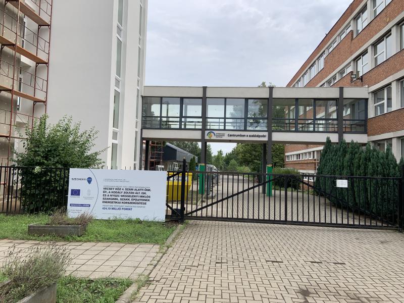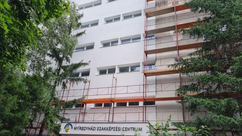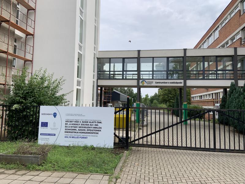 Fotókon a Vécsey köz 4. szám alatti önkormányzati épület, a Kodály Zoltán Általános Iskola és a NYSZC Wesselényi Miklós Szakgimnázium, Szakközépiskola épületeinek energetikai korszerűsítése