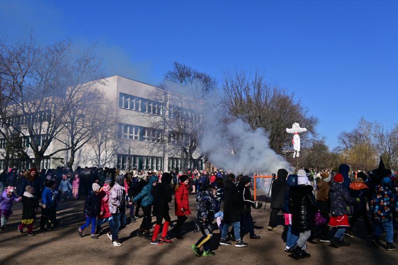 Kiszebáb égetés a Kazinczy iskolában 2025 februárjában