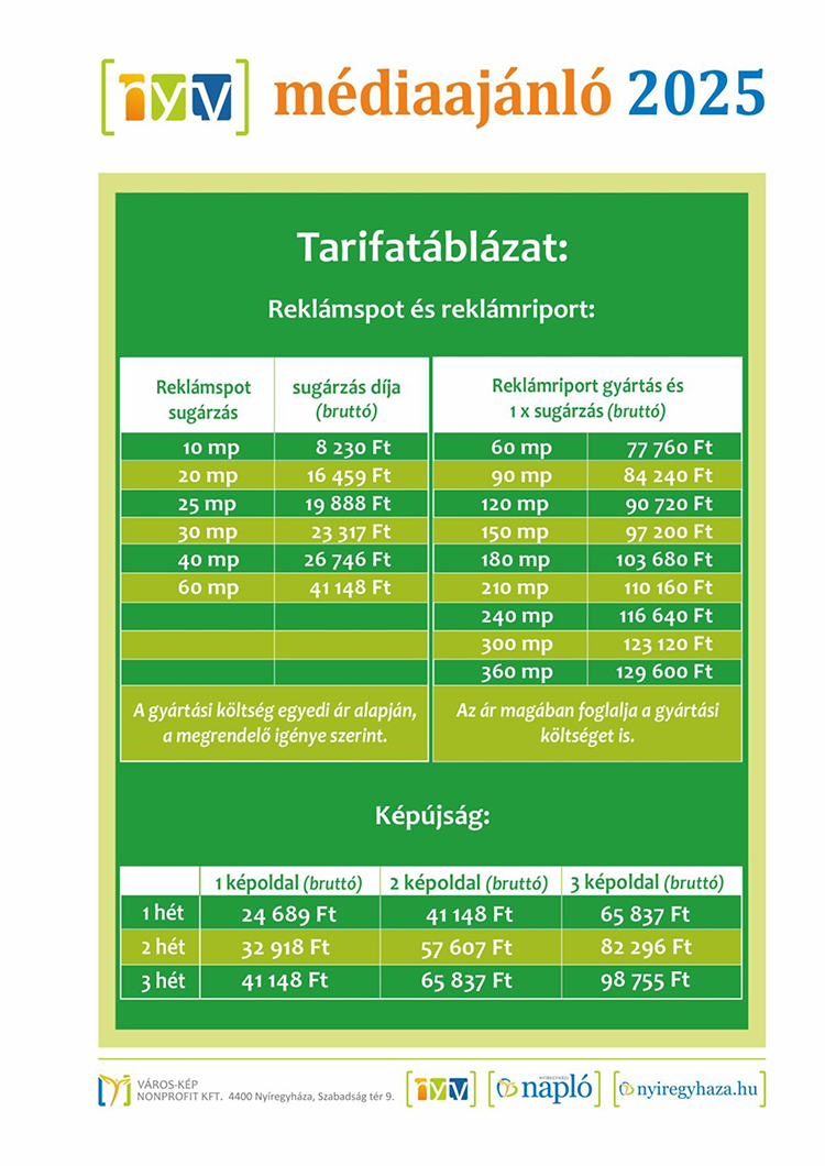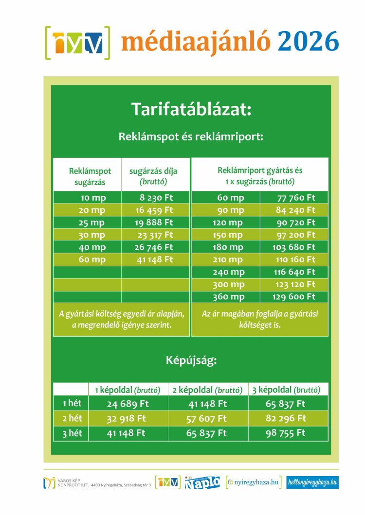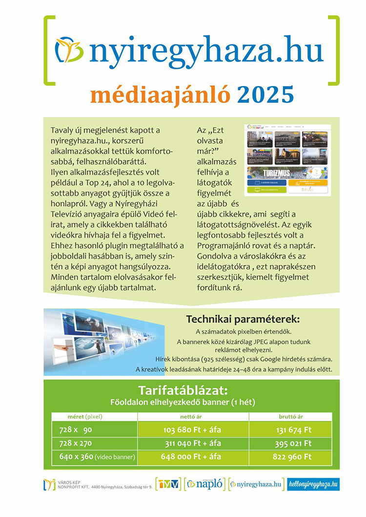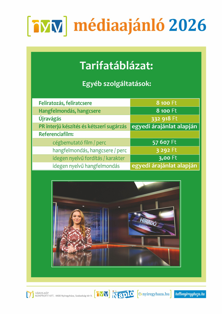 A szerkesztőség címe: 4400 Nyíregyháza, Szabadság tér 9.