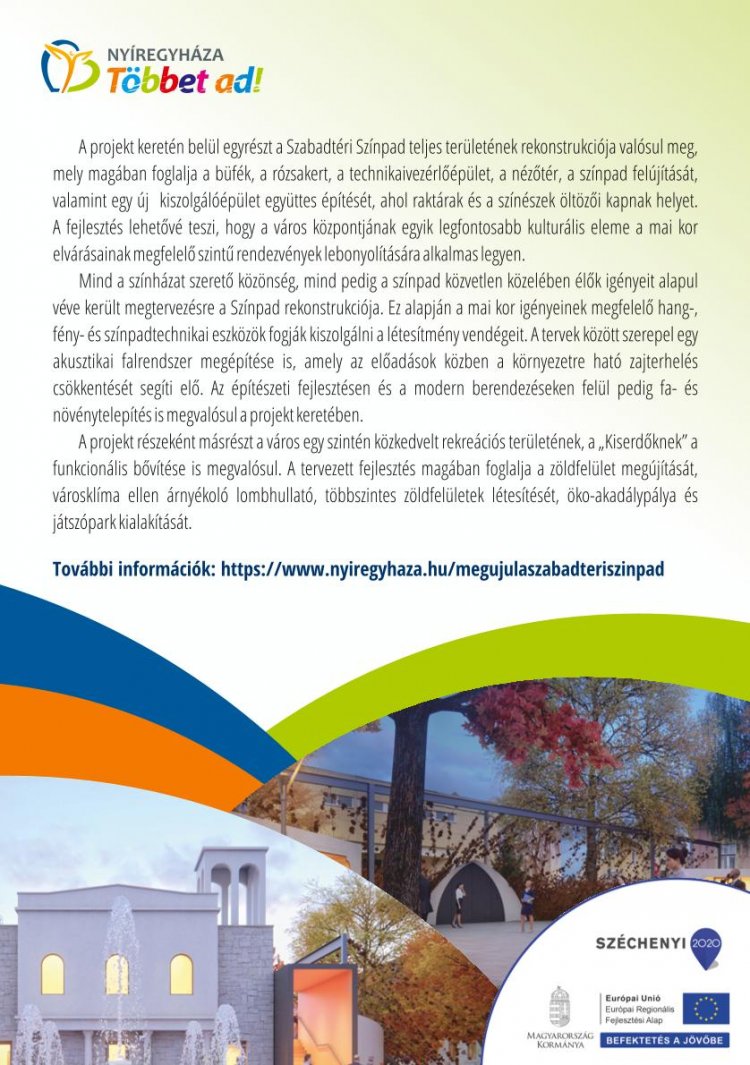 Nyíregyházi Szabadtéri Színpad rekonstrukciója és a „Kiserdők” területének funkcionális bővítése