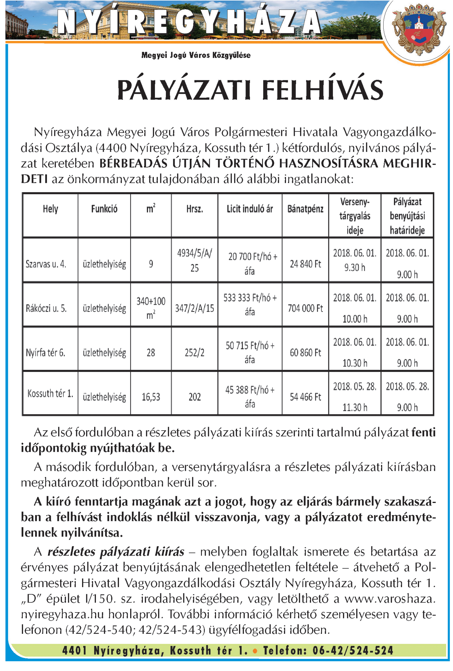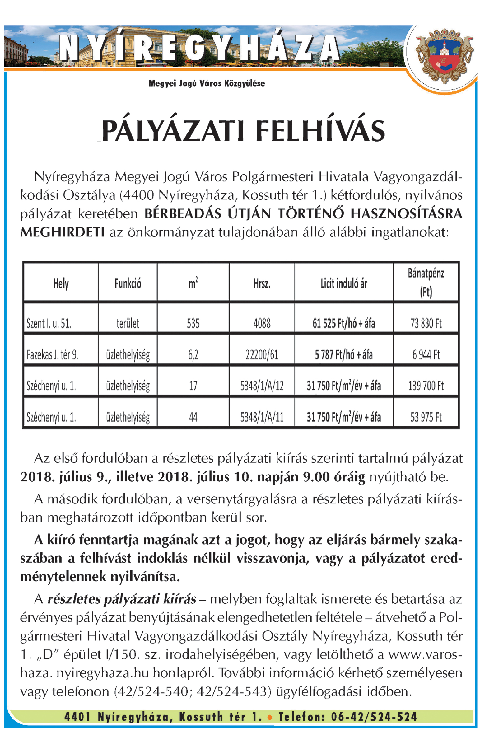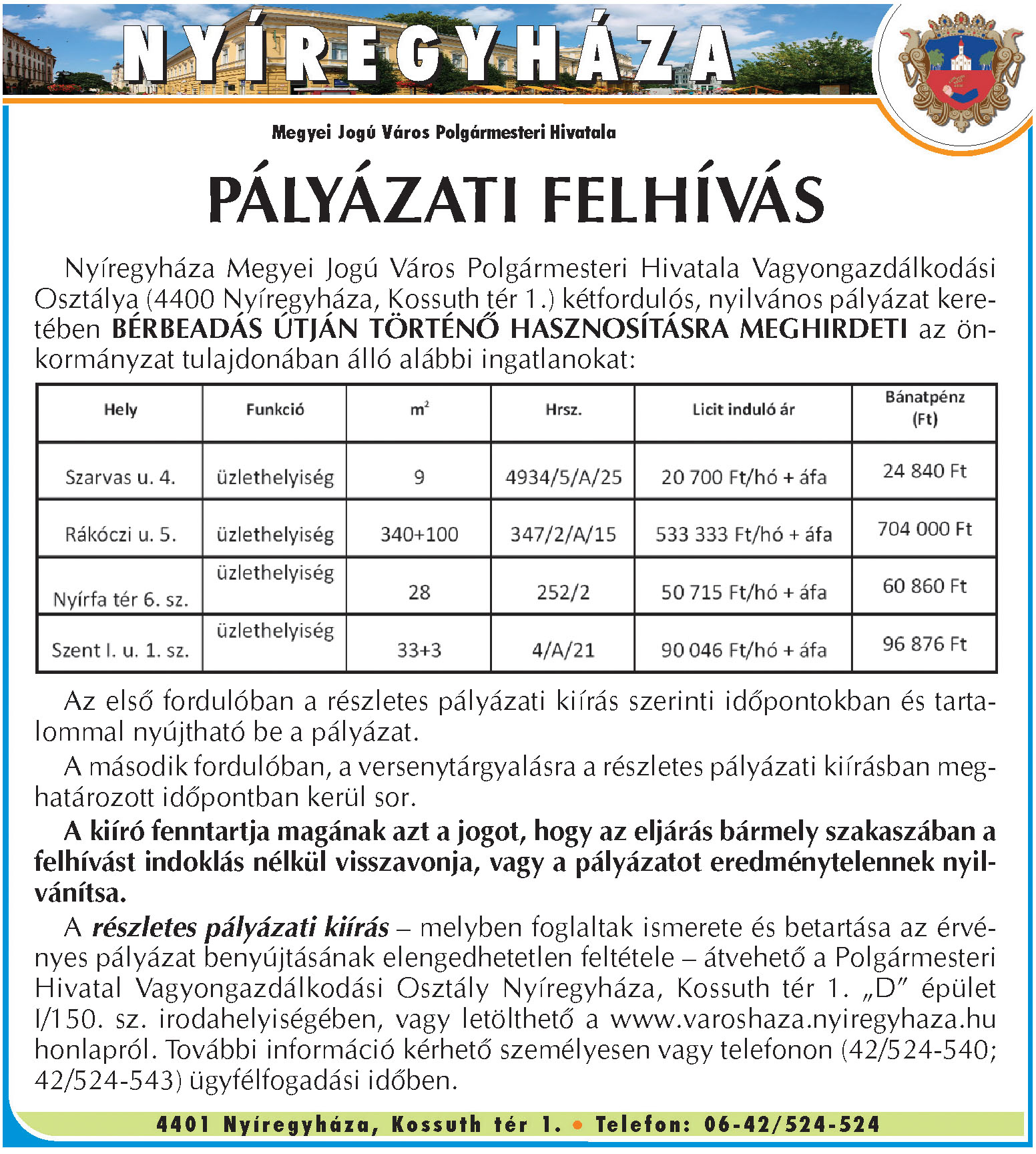 Bérbeadás útján történő hasznosításra meghirdetett ingatlanok