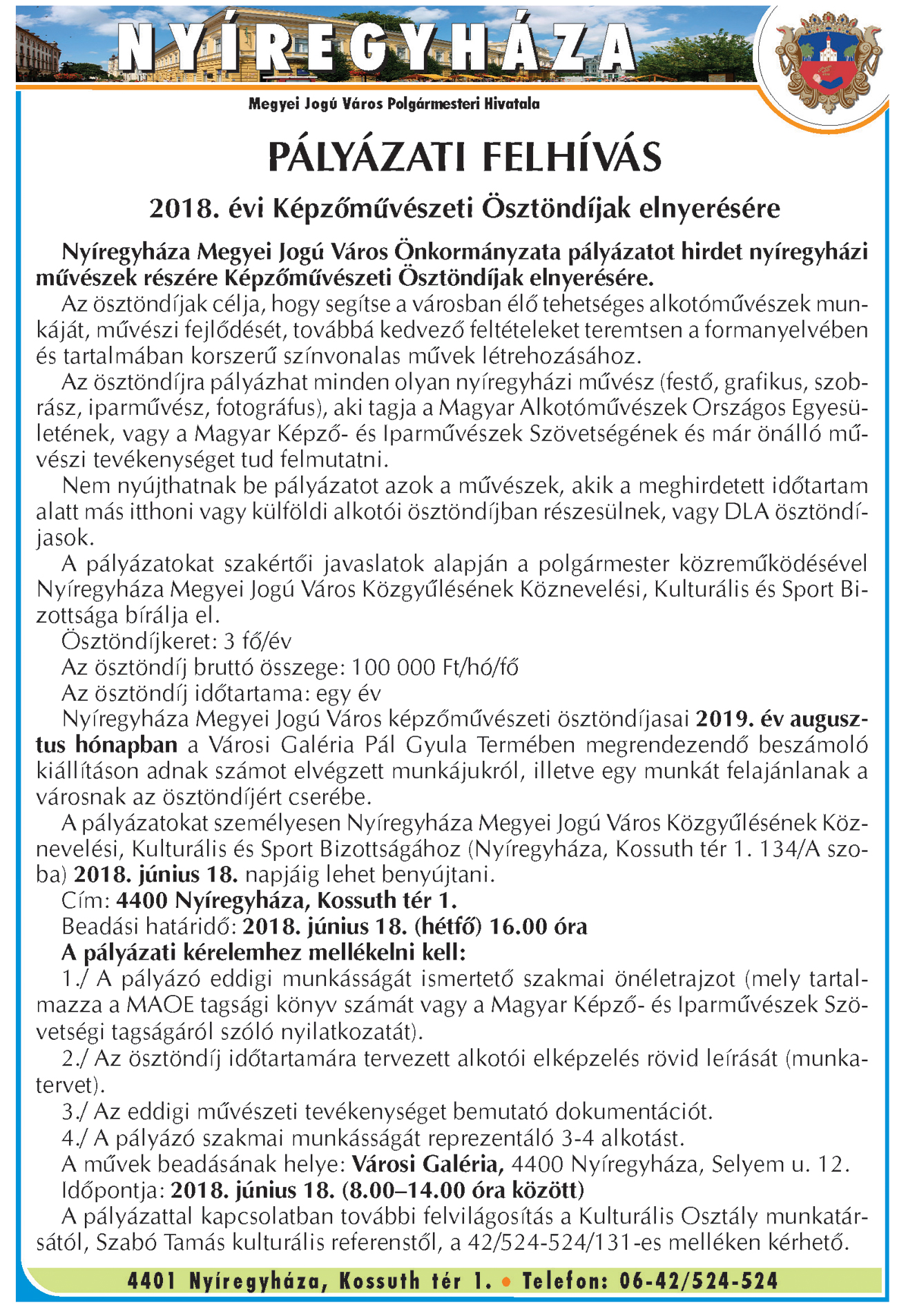 Pályázati felhívás a 2018. évi Képzőművészeti Ösztöndíjak elnyerésére