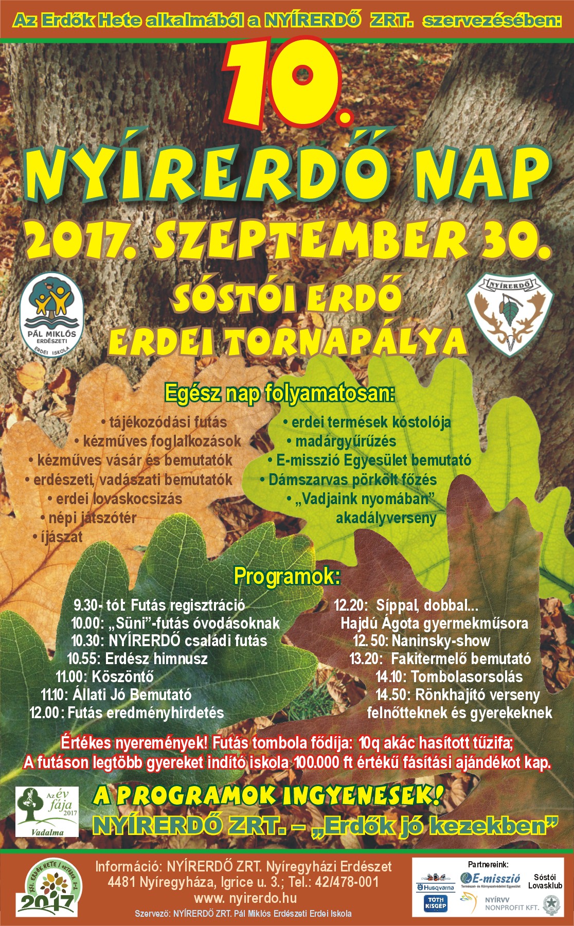 A programsorozat részeként már a 10. NYÍRERDŐ Nap lesz Nyíregyházán, a Sóstói-erdőben. Mindenkit várunk az ingyenes rendezvényre 2017. szeptember 30-án, az Erdei Tornapályánál!