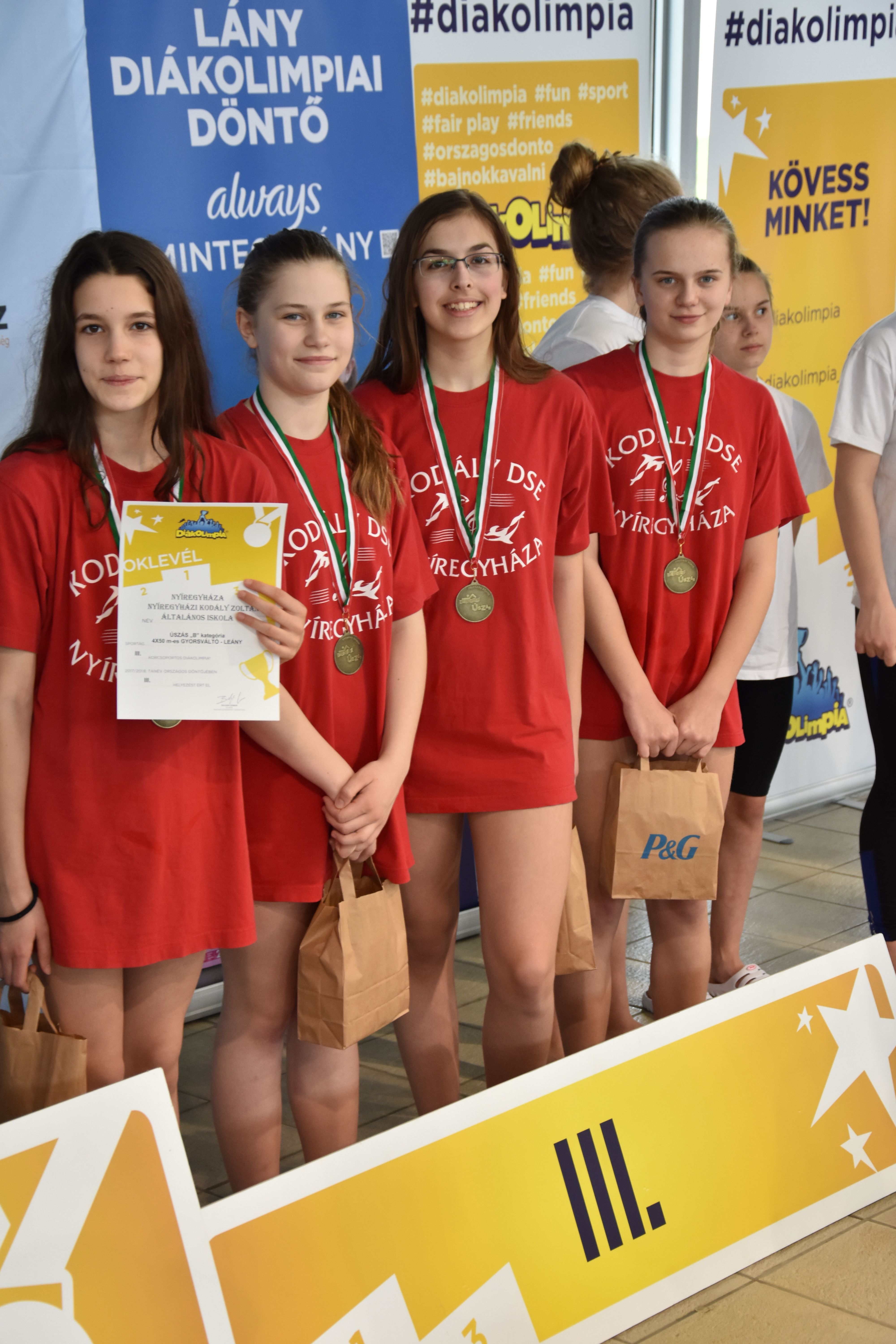 A nyíregyházi Hatházi Dóra duplázott, 100 gyorson és 100 pillangón is nyert. Ő a hétvégén Debrecenben a felnőtt országos bajnokságon is indult, és Szurovcsják Ivetthez hasonlóan bronzérmet szerzett. A Diákolimpián győzött az Arany János Gimnázium 4x50 méteres gyorsváltója, az ibrányi Asztalos Tamara 50 m mellúszásban, a fehérgyarmati Fábián Balázs 100 háton, a nyíregyházi Thuróczy Áron 100 háton és Mokos Csenge a lányoknál 100 háton. Utóbbinak ez volt az utolsó Diákolimpiája.