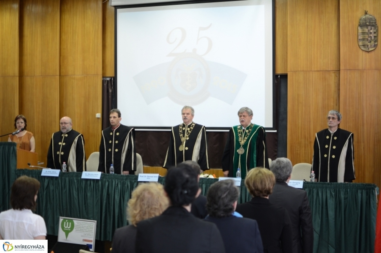 Ünnepi tanácsüléssel emlékeztek meg a jubileumról a Debreceni Egyetem Egészségügyi Kara alapításának 25. évfordulóján. A negyedszázados évfordulót köszöntő rendezvényen visszatekintettek a felsőoktatási intézmény elmúlt 25 évére, és jubileumi érmeket adtak át. Az Egészségügyi Kar 1990-ben kezdte meg működését, szociális munkás és védőnő szakkal, 60 hallgatóval. A paletta 1993-ban a diplomás ápoló és az egészségügyi ügyvitel szervező szakkal bővült, 1997-ben indult az orvosdiagnosztikai laboratóriumi analitikus szak, 1998-ban kezdődött a mentőtiszt képzés, 1999-ben pedig a gyógytornász szak. Az intézmény 2000-ben csatlakozott a megalakult Debreceni Egyetem Orvos- és Egészségtudományi Centrumához.