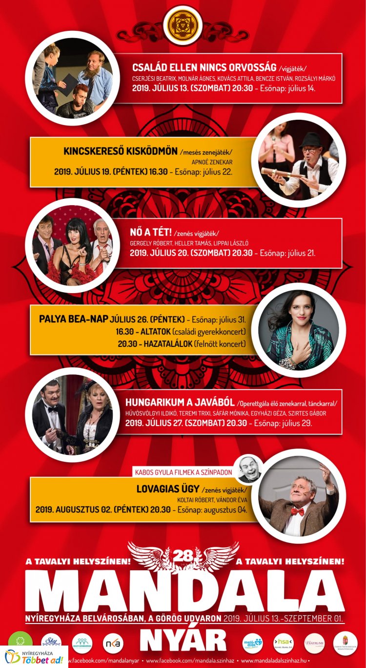 Vígjátékot és zenés vígjátékot, mesés zenejátékot, operettet és rockoperát kínál a 28. Mandala Nyár. A neves művészeket felvonultató programsorozat ismét a Görög Udvarban várja a nézőket, július 13-tól szeptember 1-ig.
