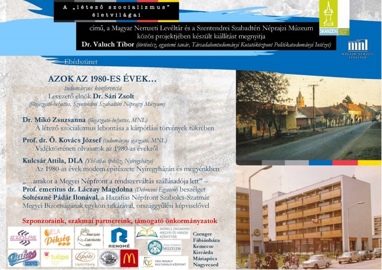 A tudományos konferencián előadás hangzik el a korszak társadalmi és építészeti sajátosságairól, a Hazafias Népfront tevékenységéről, továbbá eddig még nem, vagy ritkán látott fotókkal mutatják be a megye települései közül Nyíregyházát, Csengert, Nagyecsedet, Fábiánházát, Kemecsét, Kisvárdát és Máriapócsot. A korhangulatot idézi meg a wesselényis diákok divatbemutatója is. A hagyományoknak megfelelően kerül sor a díjak átadására és a helytörténeti pályázat eredményhirdetésére is. A rendezvény nyitott és ingyenes, minden regisztrált érdeklődőt szeretettel várnak. Bővebb információ az intézmény honlapján olvasható.