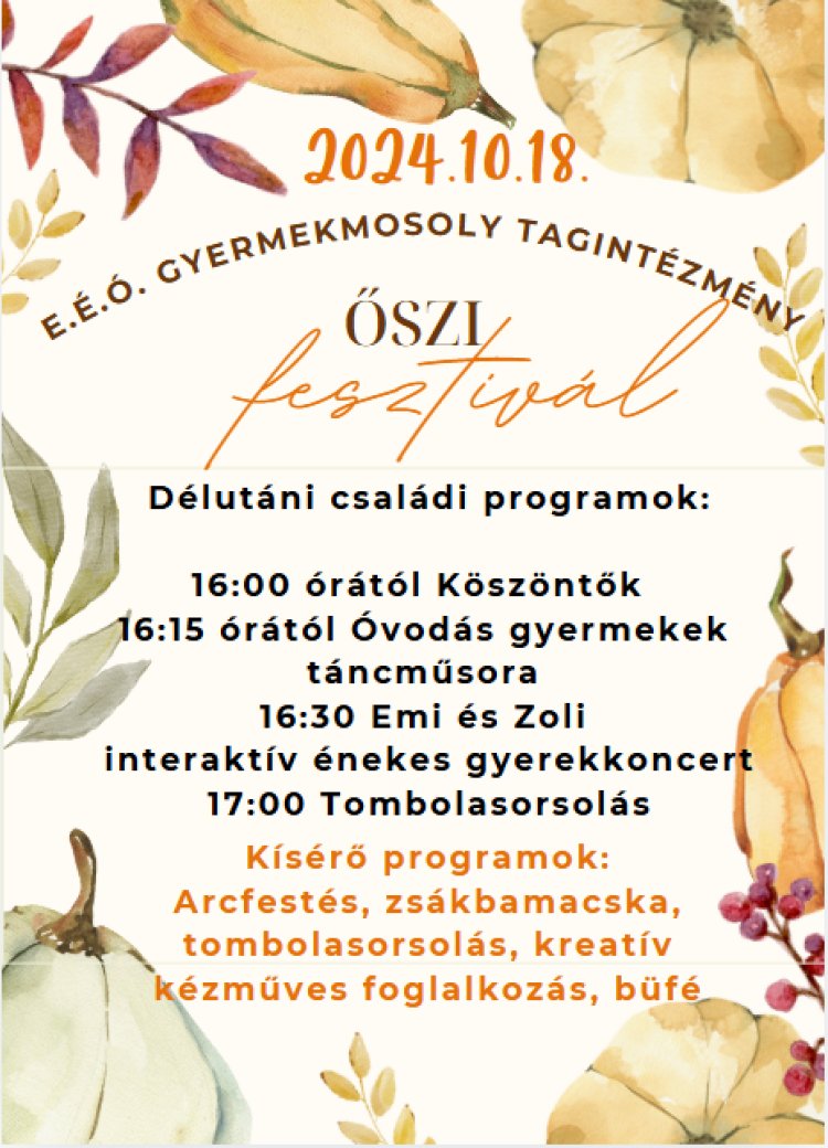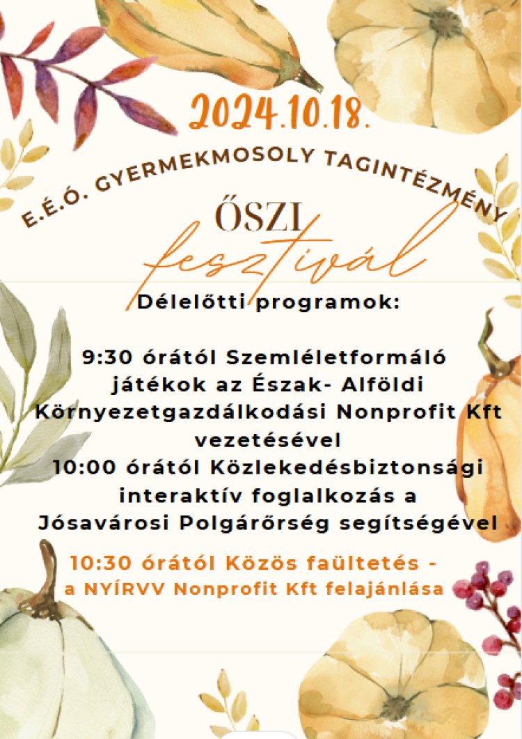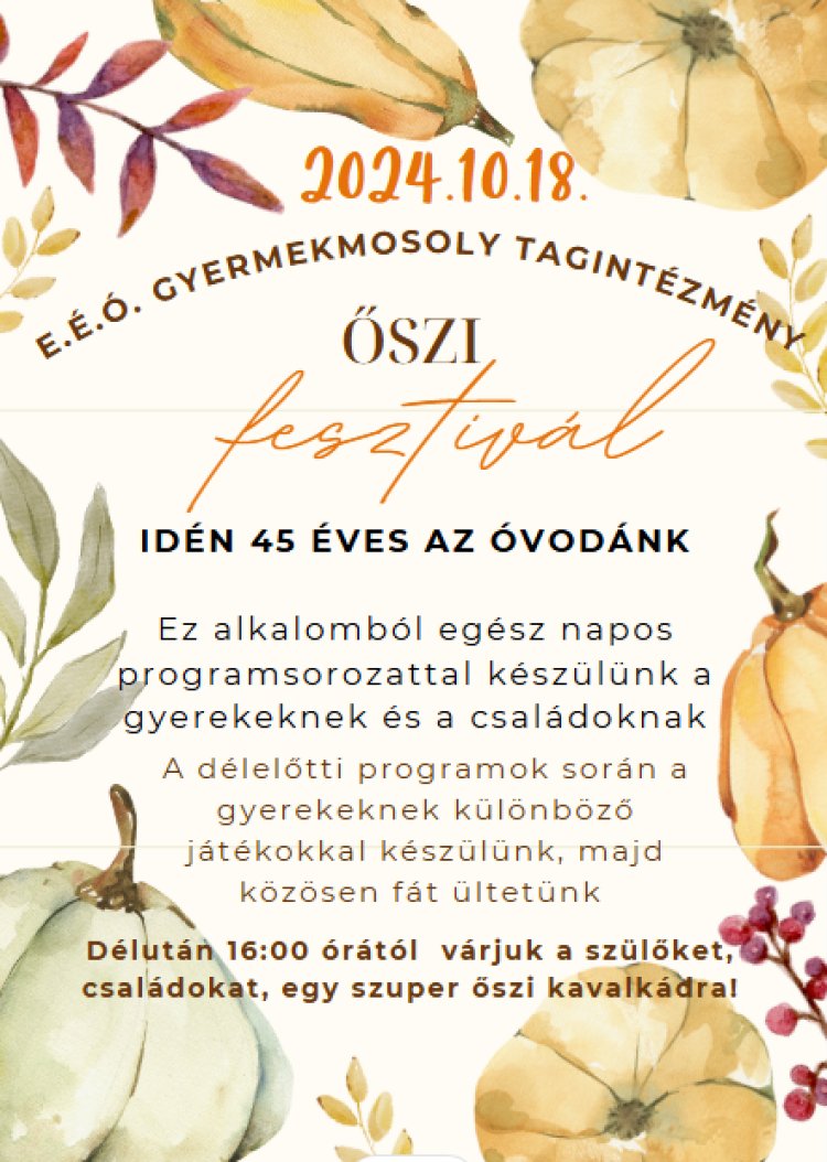 45 éves a Gyermekmosoly Tagintézmény - Őszi Fesztivált rendeznek