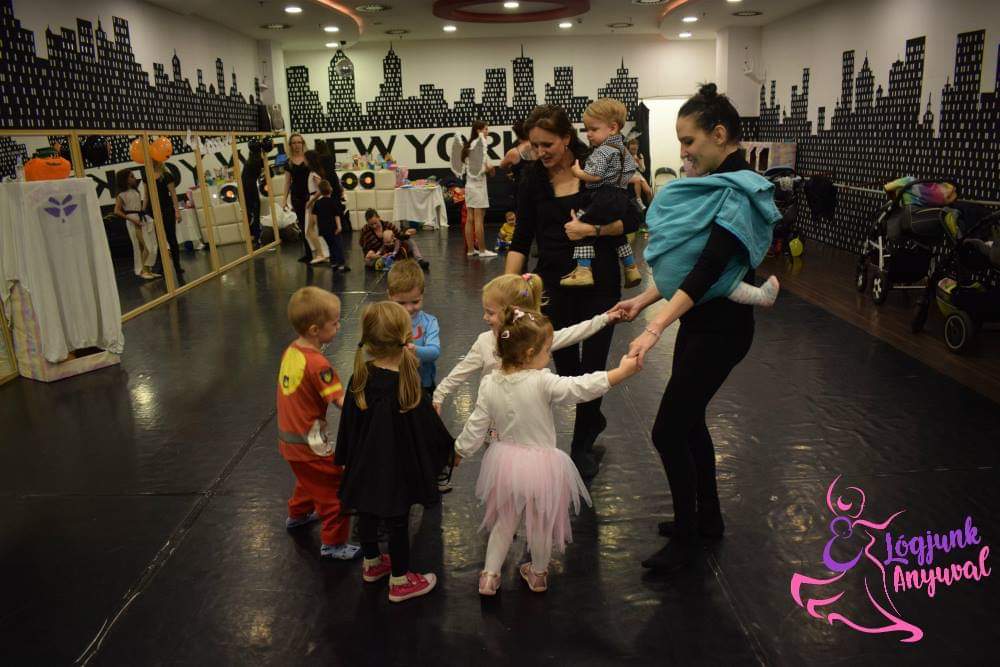 A mozgás iránti szeretet és az egyensúlyérzék is fejlődik a babáknál, az anyukák pedig kikapcsolódnak a hordozós tánc közben.