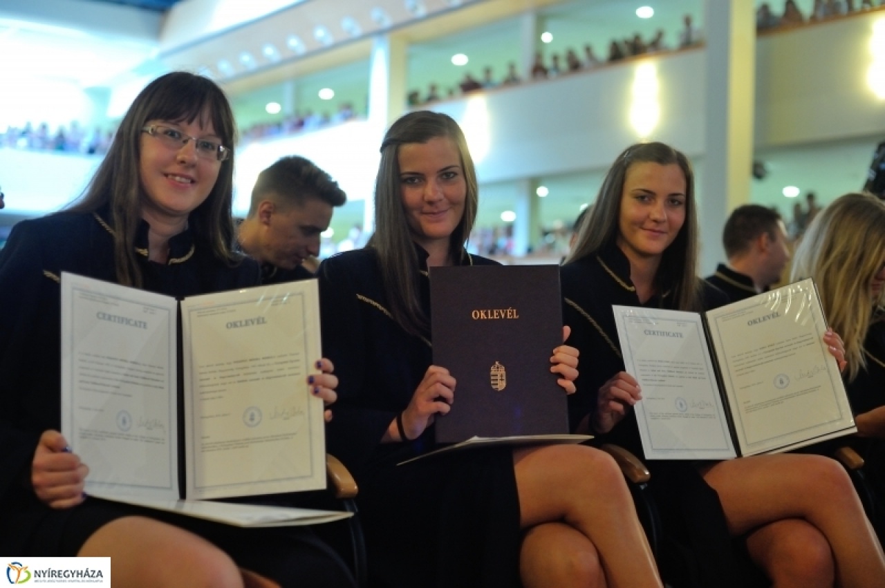 A diplomaosztó ünnepséggel lezárult a 2015/16-os tanév a Nyíregyházi Egyetemen. A tavaszi-nyári vizsgaidőszakban 744 hallgató tett sikeres záróvizsgát, diplomát azonban 497-en kaptak, hiszen az oklevél átadásának egyik feltétele a sikeres nyelvvizsga bizonyítvány. A szombati ünnepségen 17 százalékkal többen foghattak kezet az intézmény rektorával, mint az előző tanévekben, ahol a záróvizsgát tett hallgatóknak csupán fele kapott diplomát.