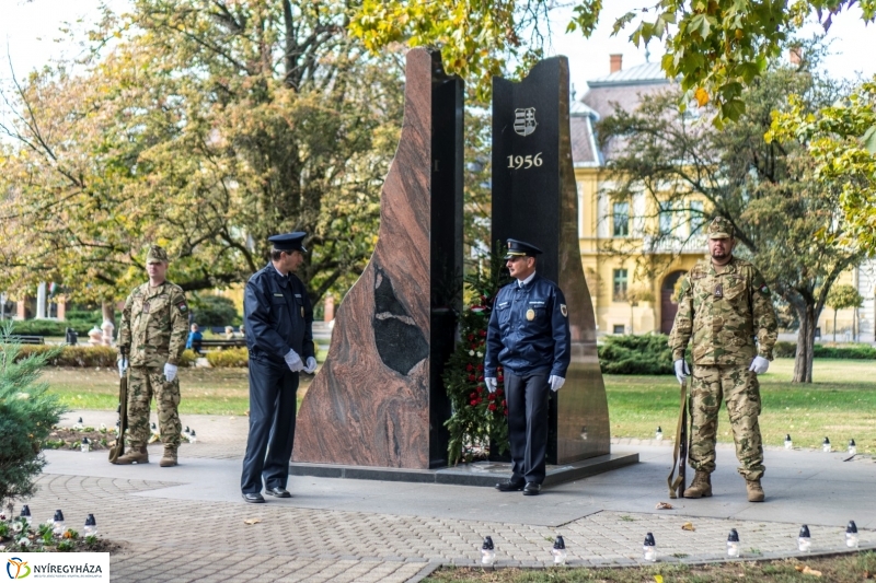 Nyíregyházán is ünnepi megemlékezést tartottak az 1956-os forradalom és szabadságharc 62. évfordulóján. Dr. Kovács Ferenc polgármester mondott beszédet, a Nyíregyházi Egyetem színjátszói Dandosballada címmel drámai játékot adtak elő, majd megkoszorúzták az 56-os emlékművet.