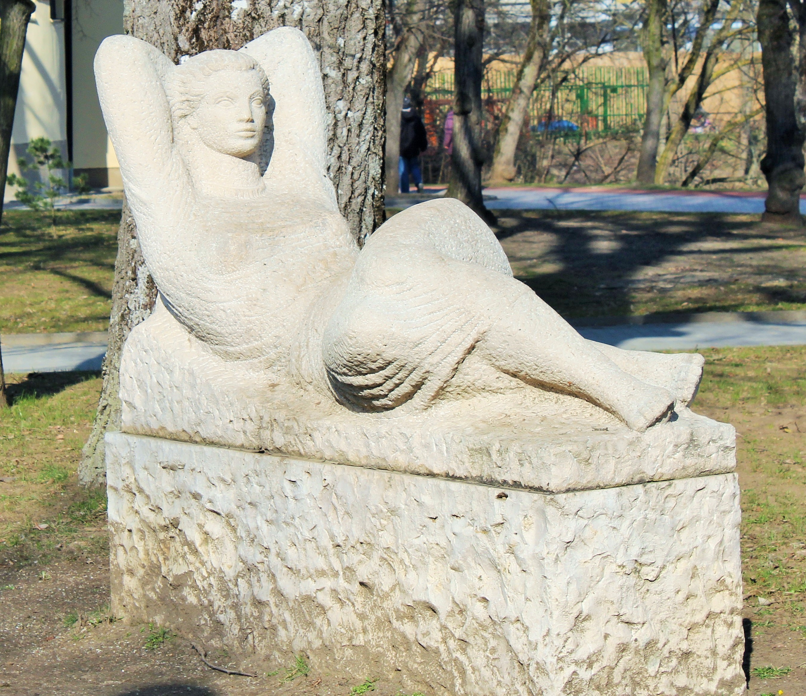 A szobor a szökőkút mellett, a Blaha Lujza sétány közelében található. Jól illeszkedik a környezetéhez, belesimul a fák közé.