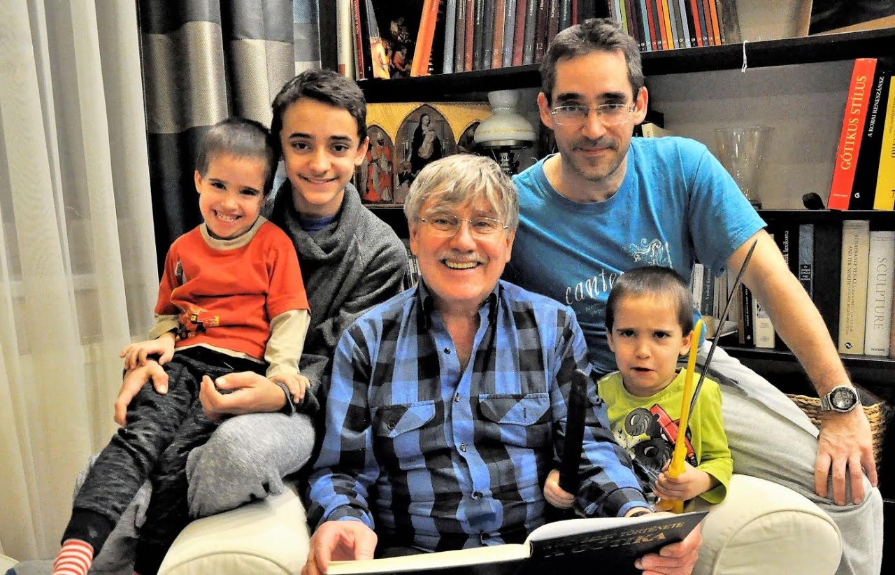 (Felső kép: Szabó Dénes fia és unokái körében)