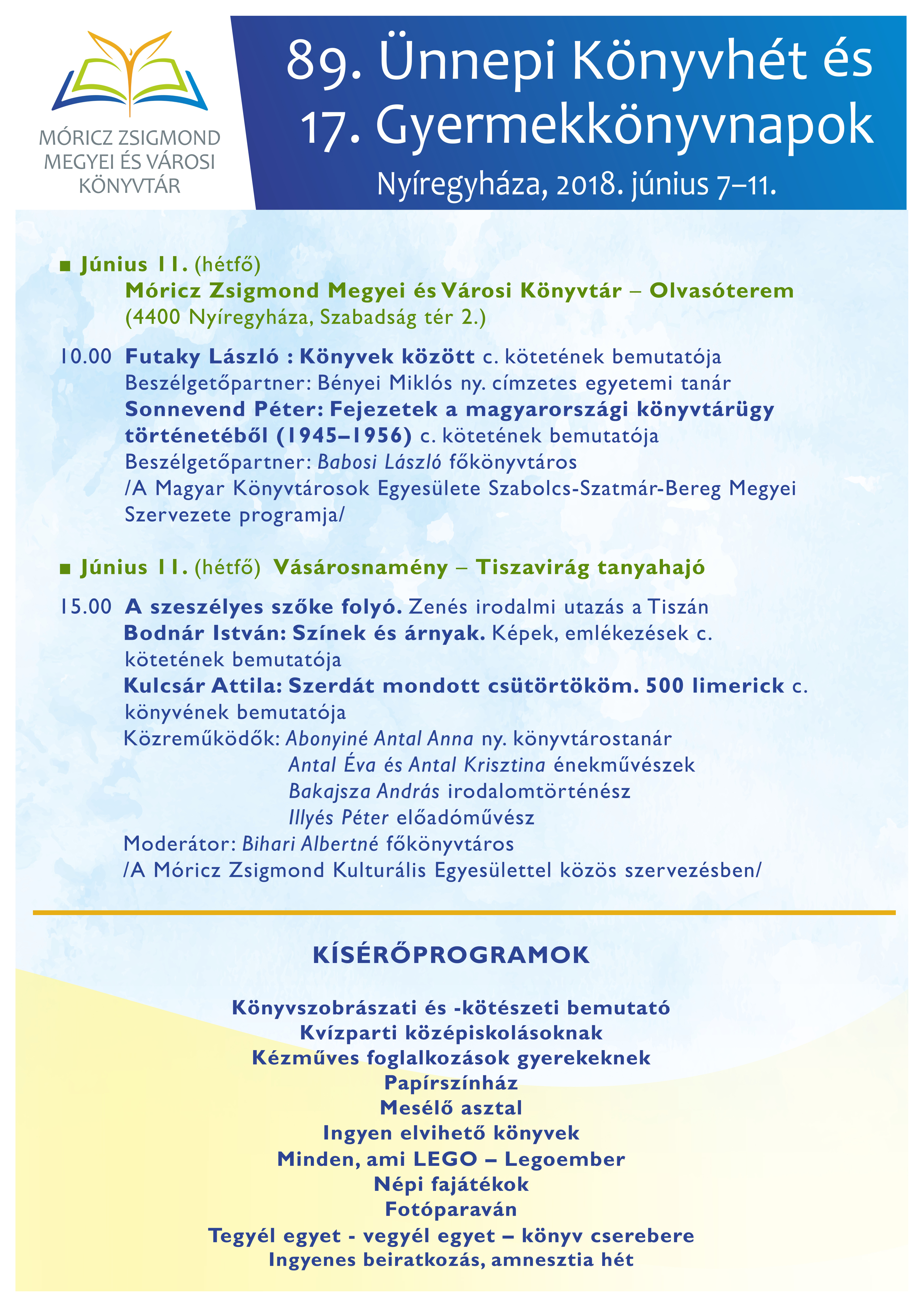89. Ünnepi Könyvhét és 17. Gyermekkönyvnapok - június 11-ei programok