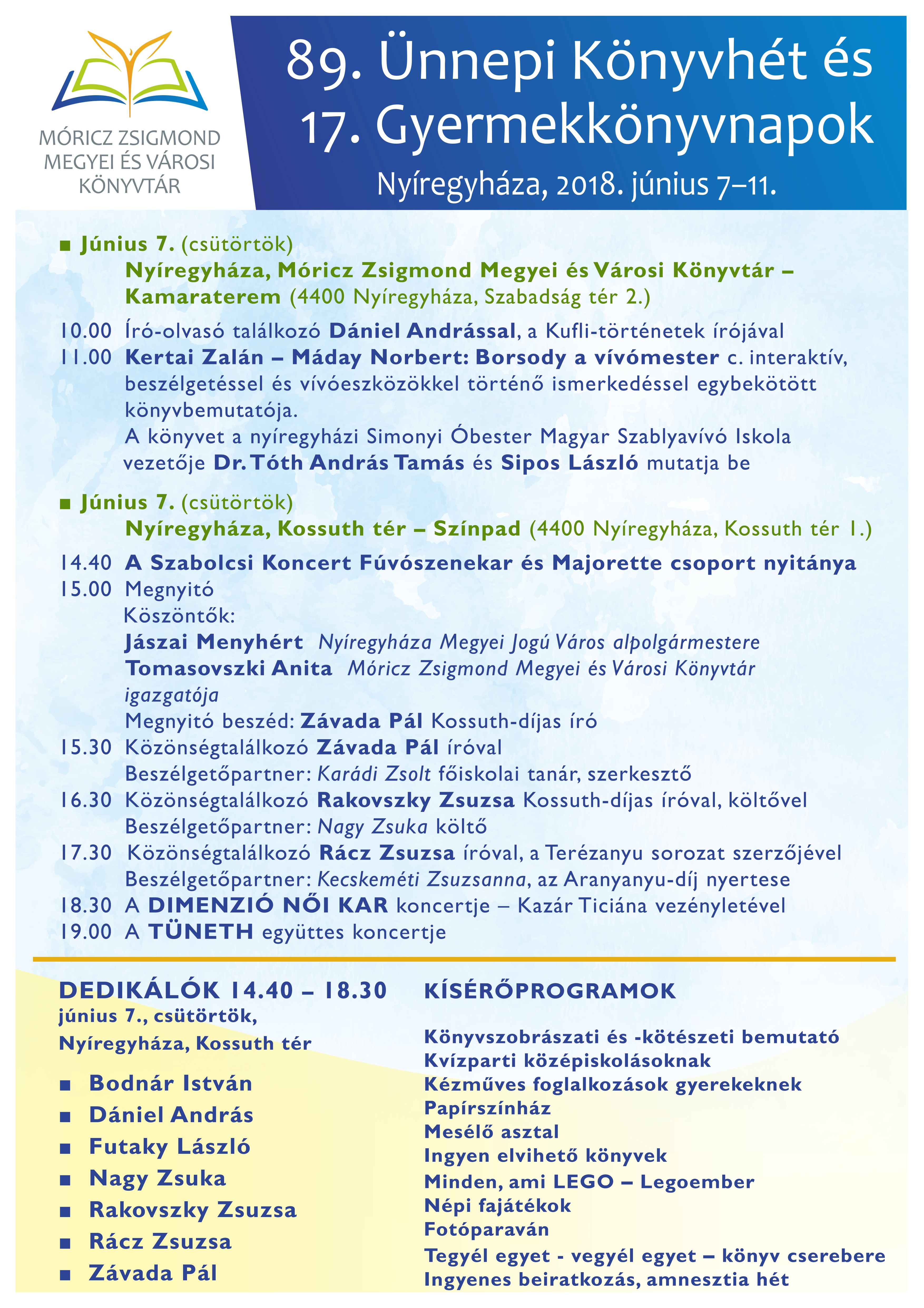 89. Ünnepi Könyvhét és 17. Gyermekkönyvnapok - június 7-ei programok