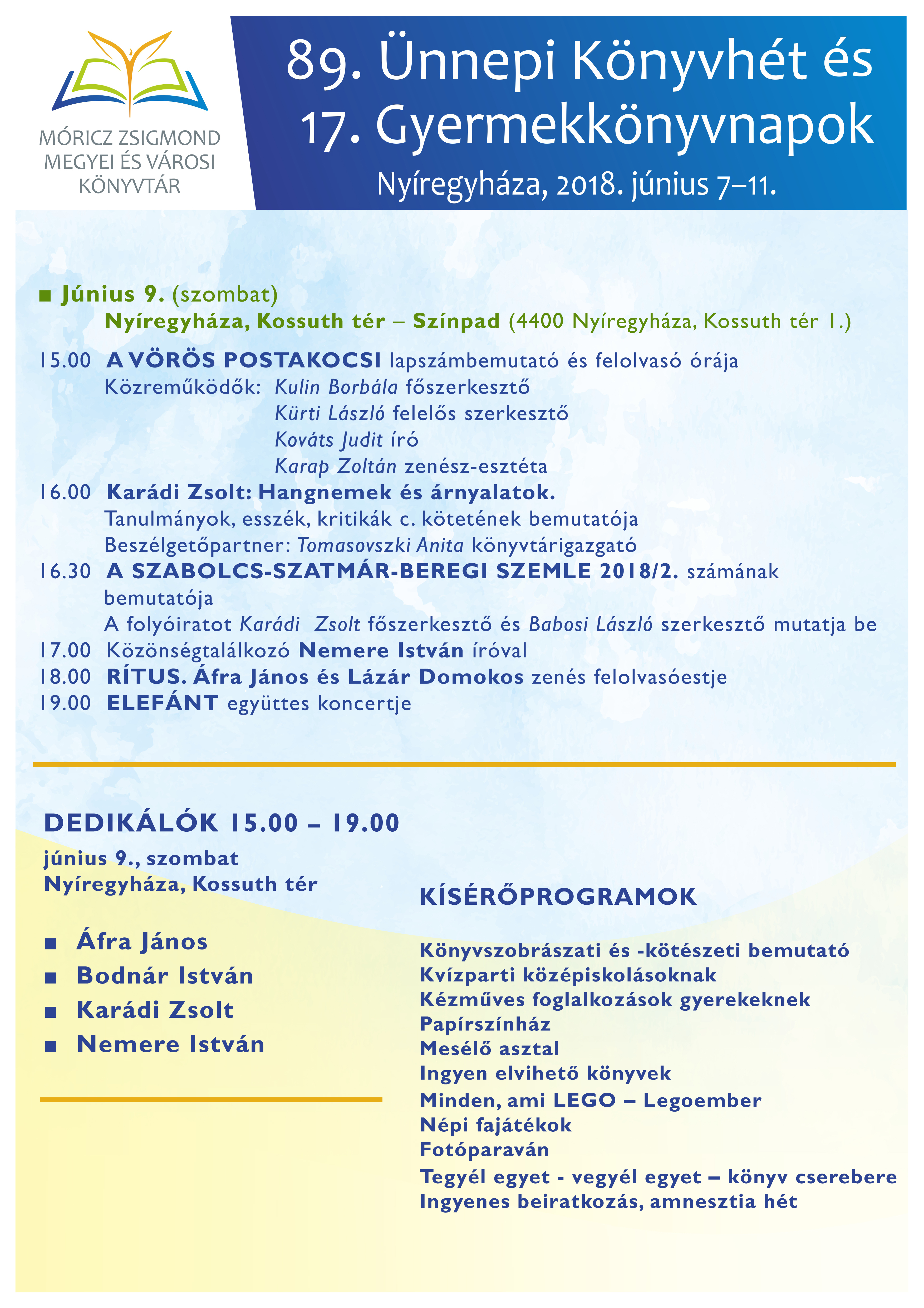 89. Ünnepi Könyvhét és 17. Gyermekkönyvnapok - június 9-ei programok