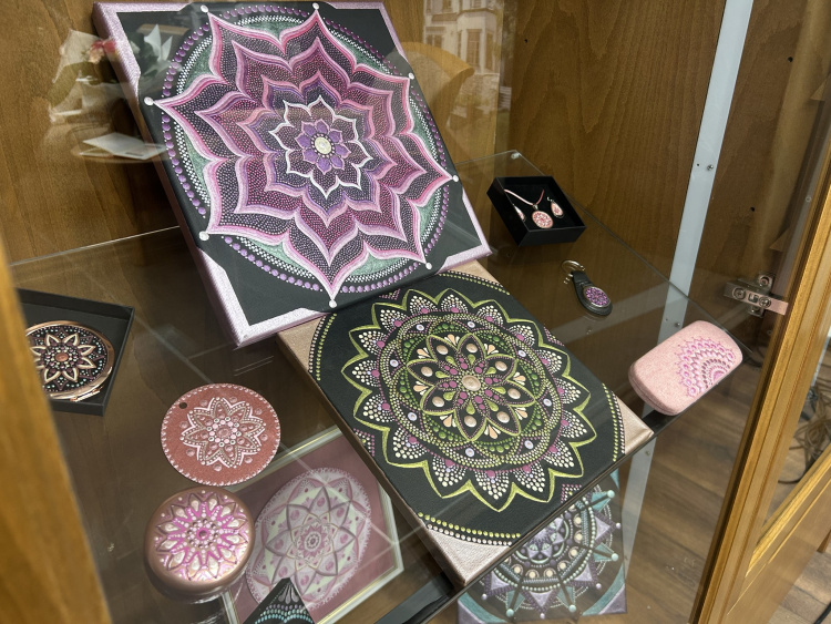 A látogatók mandalafestményekben, ékszerekben, díszdobozokban, pénztárcákban, sminktükrökben, kulcstartókban, szemüvegtokokban és csészékben is gyönyörködhetnek.