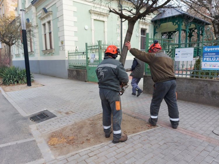A Benczúr téren három kiszáradt fát vágtak ki a NYÍRVV szakemberei a főkertész utasítására