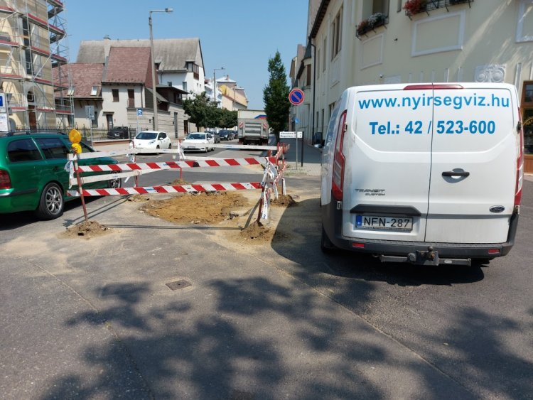 A Bethlen Gábor utcánál a Nyírségvíz egy ivóvízcső helyreállítását végzi, forgalomkorlátozás mellett.