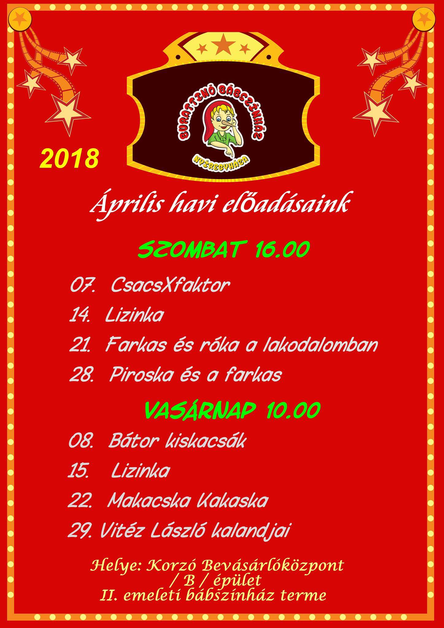 A Burattino Bábszínház áprilisi előadásai
