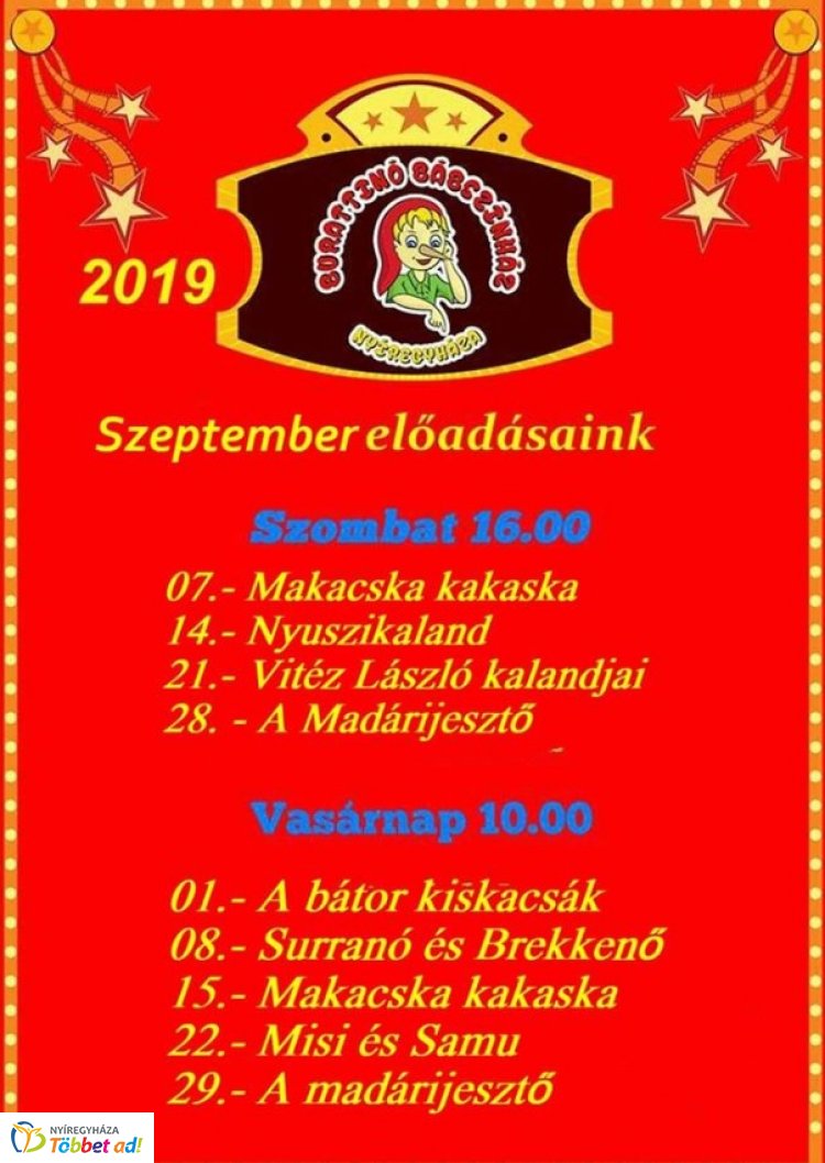 A Burattinó Bábszínház szeptemberben is a megszokott időpontokban várja a kikapcsolódásra vágyó családokat.