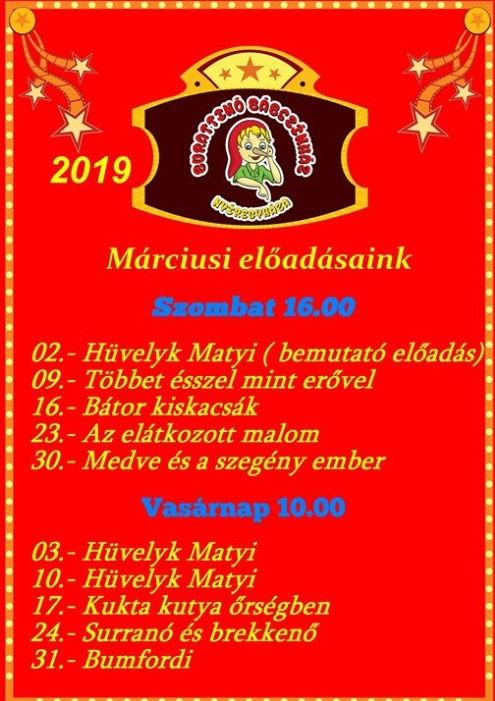 A Burattino Bábszínház márciusi előadásai