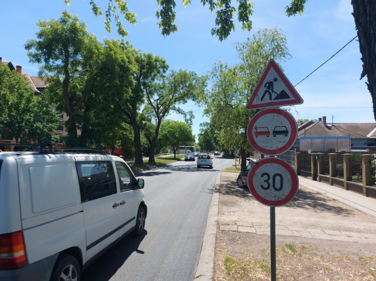 Ennek ellenére az út továbbra is munkaterület, mert az útburkolati jelzéseket még nem festették fel. Így továbbra is érvényes maradt az előzési tilalom és a 30 km/h-ás sebességkorlátozás.