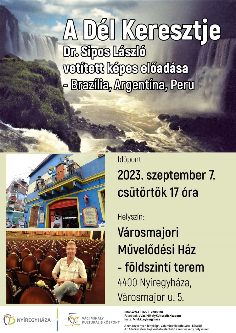 A Dél Keresztje; Dr. Sipos László vetített képes előadása. Benne Brazília, Argentína, Peru.