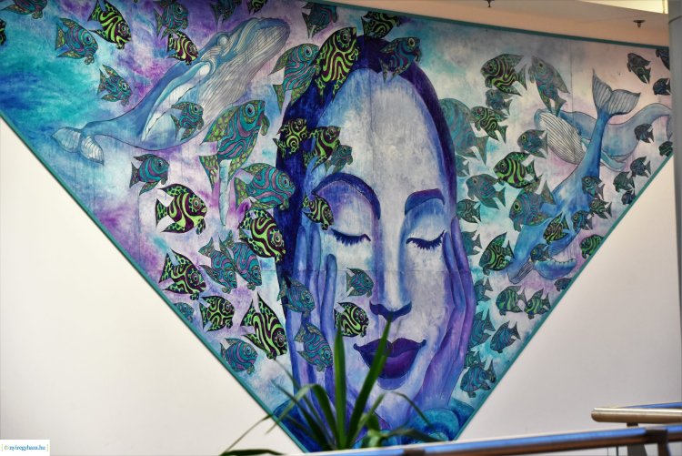 Köszöntötte a művészt, a közönséget és a kiállított alkotásokat Schönhauer Andrea, a bevásárlóközpontot működtető SES ügyvezetője. A mecénás képletesen átvette a 8x3 méteres alkotást, mely a Korzó harmadik emeletén kapott helyet, szemközt a korábbi képpel. Komplex és mozgalmas a kreatív művész valamennyi alkotása, ugyanakkor mély tartalommal bír, melyen érdemes elgondolkodni.