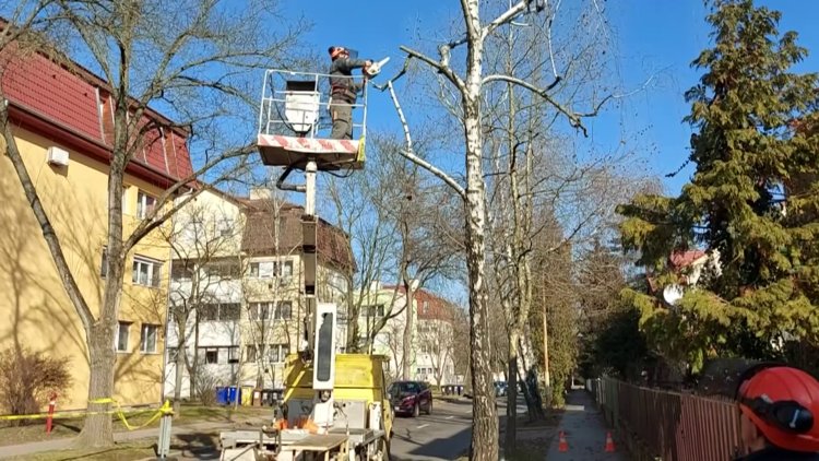 A Gádor Béla utcánál a balesetveszélyes fákat vágta ki a NYÍRVV forgalomkorlátozás mellett