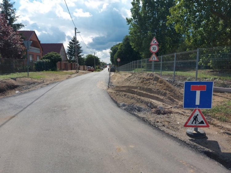 Mindkét irányban építési munkálatok szűkítik a sávokat. Az innen nyíló Füredi utcán teljes szélességében útlezárások mellett dolgoznak.
