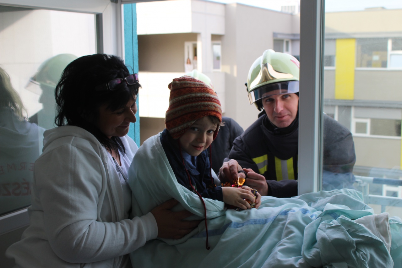A gyerekosztályon ajándékoztak a nyíregyházi hivatásos tűzoltók