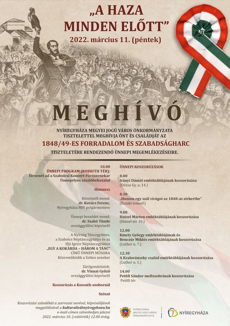 Az 1848/49-es forrdalom és szabadságharcra emlékeznek március 11-én a város több helyszínén. A koszorúzások mellett 10 órától a Kossuth téri ünnepségre várják a városlakókat.