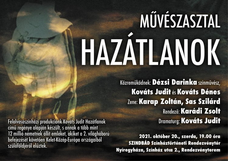 A Hazátlanok c. felolvasószínházi előadást mutatják be 2021. október 20-án, szerdán 19 órától a Szindbád Színháztörténeti Rendezvénytér Rendezvénytermében (Nyíregyháza, Színház utca 2.)