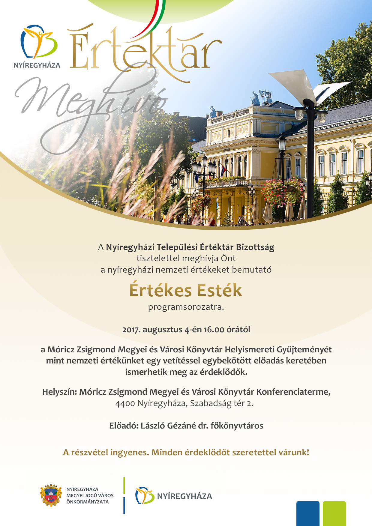 A Nyíregyházi Települési Értéktár Bizottság programsorozata, az Értékes Esték új állomásához érkezett, ezúttal a Móricz Zsigmond Megyei és Városi Könyvtár Helyismereti Gyűjteménye kerül bemutatásra.