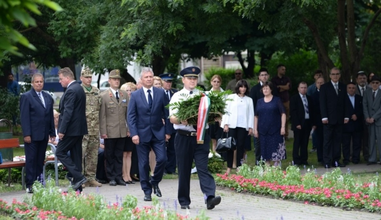 A rendezvényen dr. Róna Tamás, a kecskeméti körzet főrabbija mondott emlékező beszédet, melyet a himnusz sorainak idézésével kezdett, amit szerinte minden időben újra kell értelmezni.