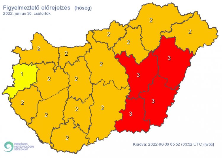 A hőség veszélye miatt első-, másod- és harmadfokú figyelmeztetéseket is kiadott az Országos Meteorológiai Szolgálat.