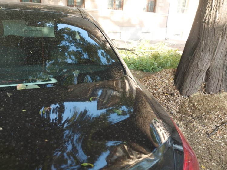 Egy parkoló gépjárműre zuhant egy lehasadt faág a Szarvas utcán a Bárczi Gusztáv Általános Iskola előtt.