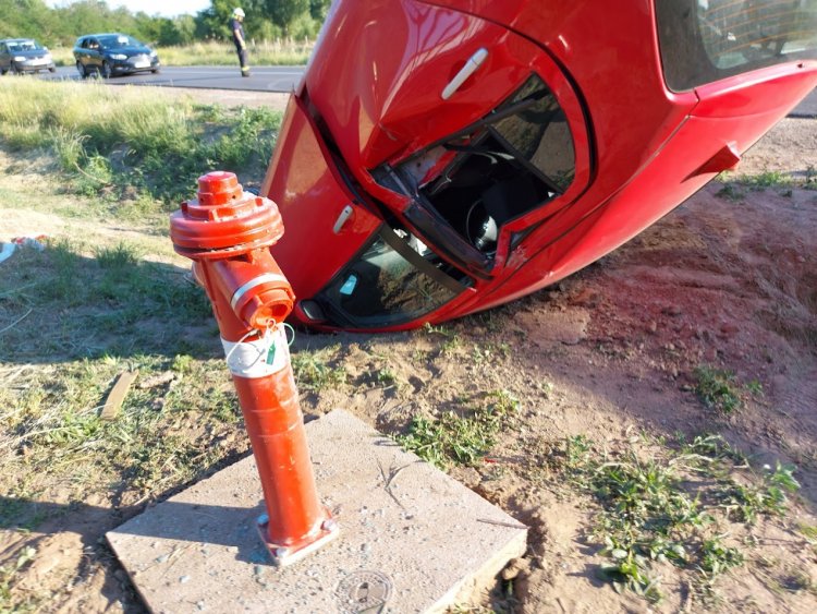 A Kállói úton egy autó az út bal oldalán lévő árokba borult, és kiütött egy tűzcsapot