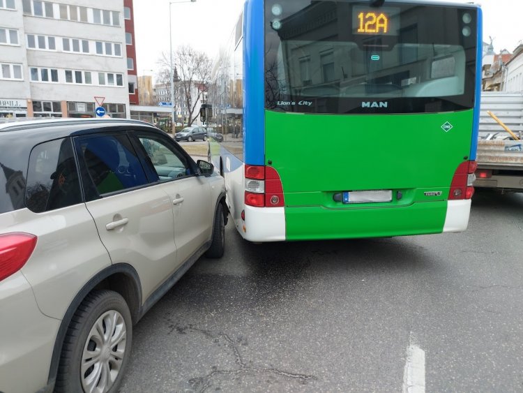 A Kálvin téren kanyarodás közben egy autóbusz és egy személyautó ütközött össze