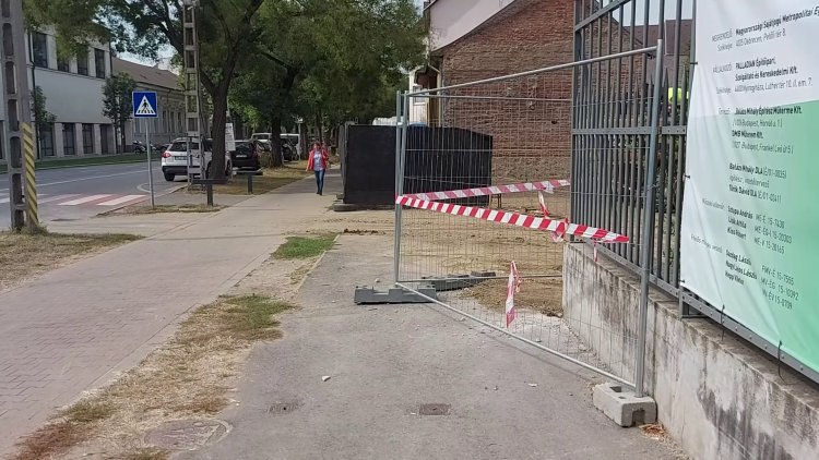 A kerékpárútra terelték a gyalogosforgalmat a Bethlen Gábor utca egy szakaszán egy épületbontás miatt.