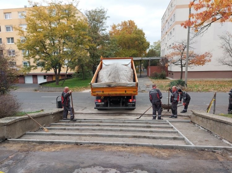 A Korányi közben új járda kialakítását végzi a NYÍRVV