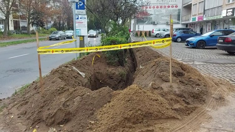 A Kossuth utcán a járdán való gyalogos közlekedést korlátozták erősáramúkábel-fektetés miatt.