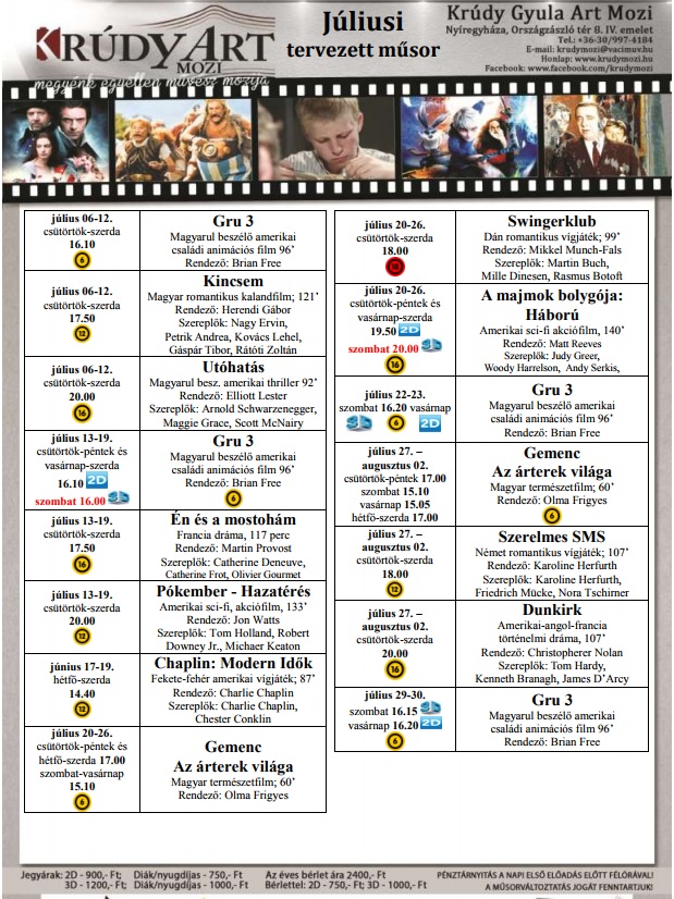 A Krúdy Art Mozi júliusi kínálata