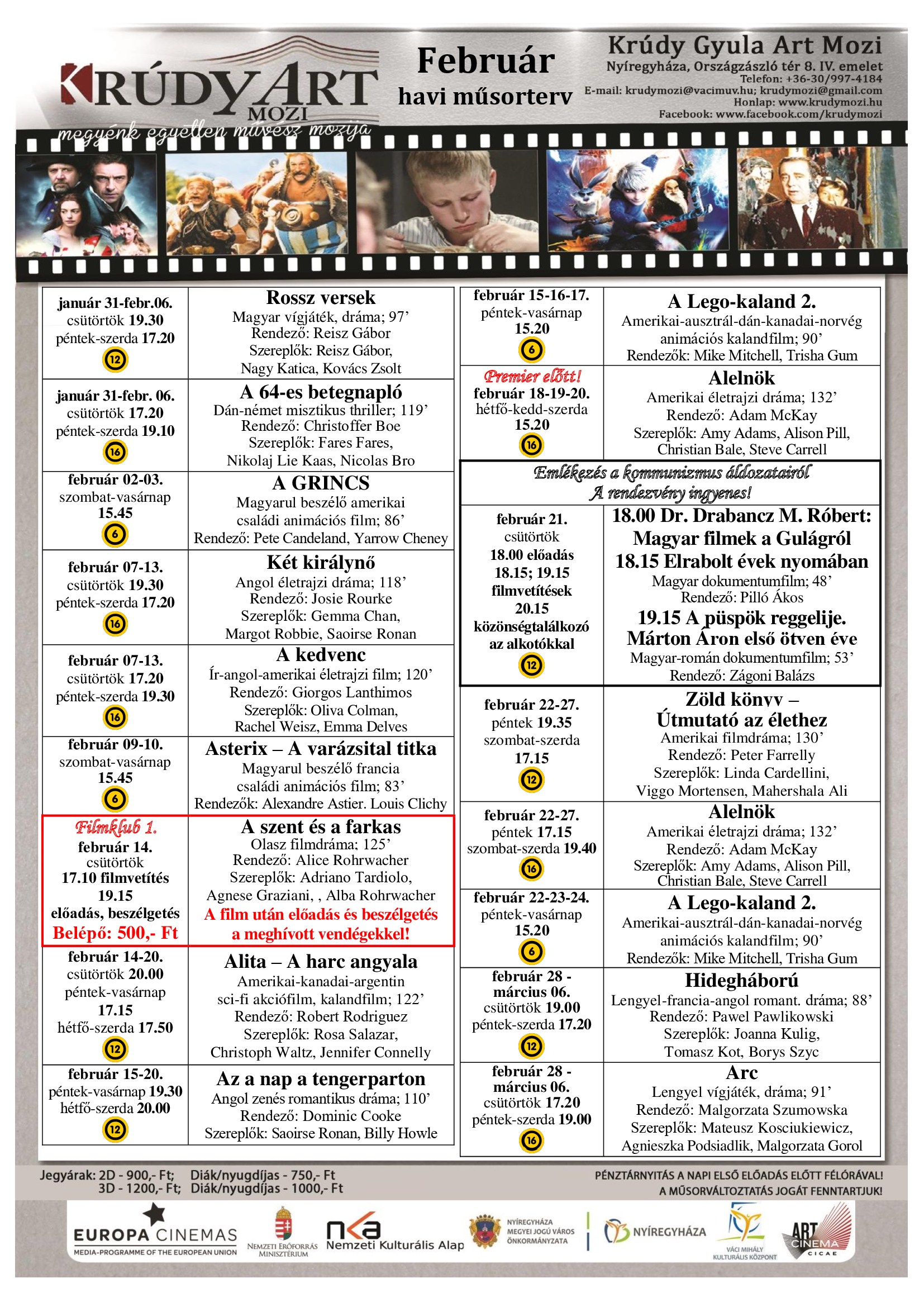A Krúdy Gyula Art Mozi februári filmkínálata