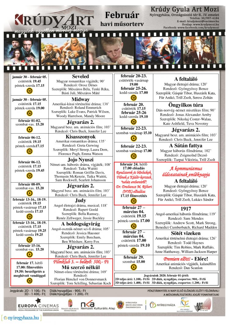 A Kisasszonyok amerikai romantikus film és A feltaláló címmel, a Béres Csepp megalkotójáról készített új magyar játékfilm vetítése is szerepel megyénk egyetlen művész mozijának februári kínálatában. (Részletes műsorterv!)